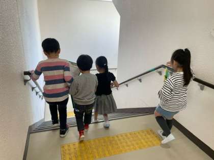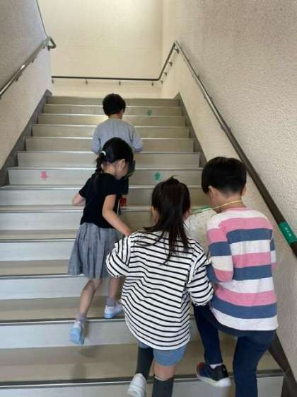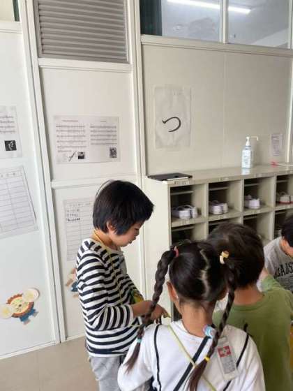 学校探検をしました。色々な教室に行って、キーワードを集めます^_^