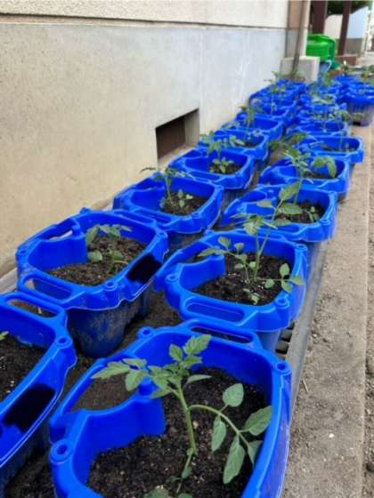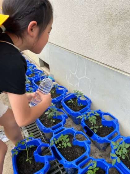 トマトの苗を植えました。これから、大切に育てて、たくさん収穫したいと思います。