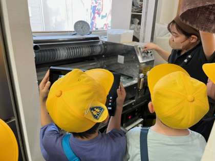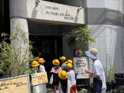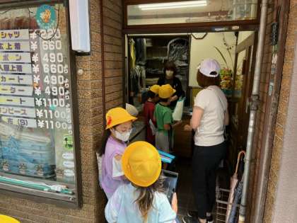 生活科の学習で、町たんけんをしました。小松商店街の皆様に協力いただき、グループに分かれて、インタビューをさせてもらいました。