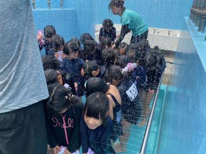 先週からプールが始まりました。少し肌寒い日もありますが、水の中に入ると「あったかい〜!」という声も聞こえてきました。