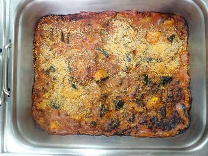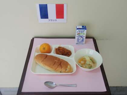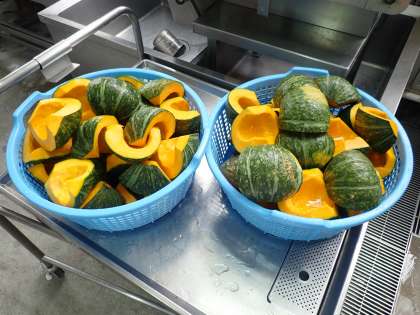 今日の給食には、かぼちゃのミートグラタンが出ました。