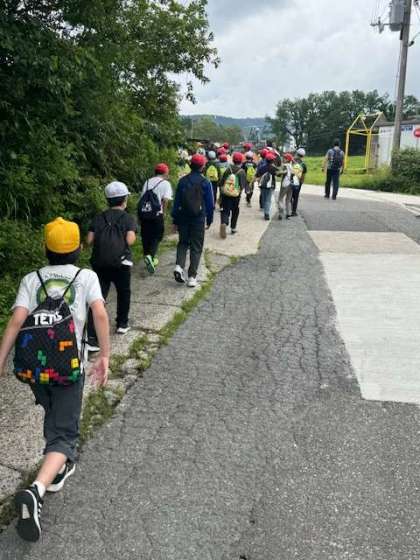 避難訓練が終わり、オリエンテーリングに向かいます。