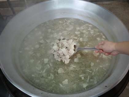 ソーキ汁は、「ソーキ」と呼ばれる豚の骨つきあばら肉とだいこん、こんぶなどをかつおぶしで煮こんだ汁ものです。
