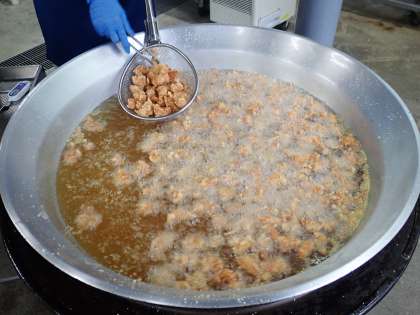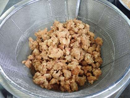 あげたときにしょうゆの色が赤くなり、衣が白く浮かぶ様子が紅葉を流れる竜田川に見えたことから、「たつたあげ」の名前がついたといわれています。