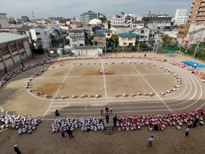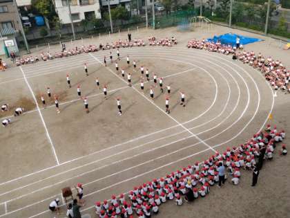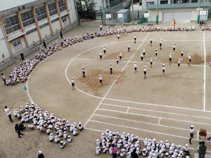 今朝は、全学年そろって、応援合戦の練習をしました。