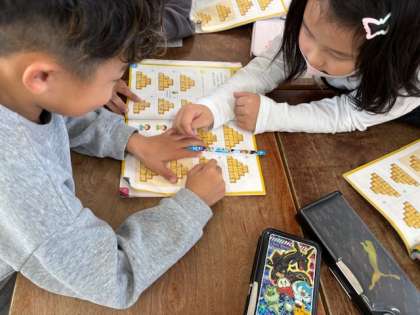 算数では、難しいところを友だちと一緒にやる姿がみられました。国語では、まとめて呼ぶ言葉の学習をしています。ノートを書くことにもだんだん慣れてきました^_^