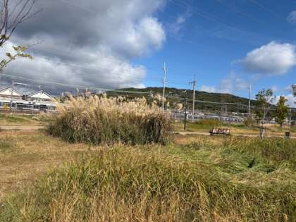 すごく端っこのすすきの裏に、、