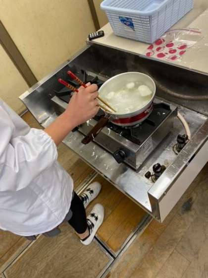 5年生が家庭科で調理実習をしていました。