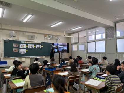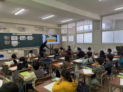 栄養教諭の相澤先生による、栄養指導がありました。自分たちの給食が、どこからどのように運ばれて調理されているのかを知ることができました。
