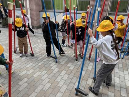 先日、運動委員会の子どもたちに竹馬を教えてもらいました♪