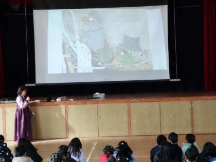 1年生にとっては、初めての体験。韓国・朝鮮のソンセンニㇺに来ていただき、韓国・朝鮮のことを少し勉強しました。