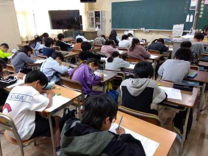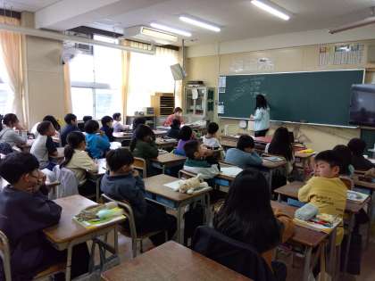 4年生の授業の様子です。社会では都道府県名を覚えながらワークシートを作成しました。静かに黙々と取り組んでいました。理科は専科の先生の授業で、理科授業の取り組み方について説明を受けました。