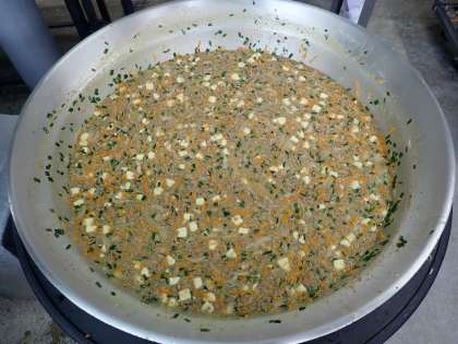 給食では、赤みそやしょうゆなどで味つけし、トウバンジャンで辛みをつけています。