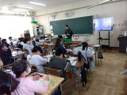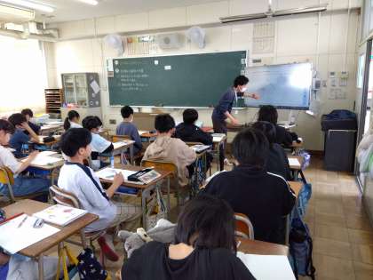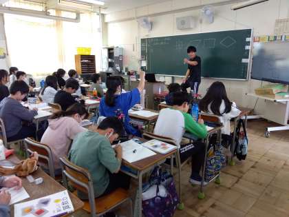 6年生の算数の授業の様子です。点対称の図形の学習をしています。点対称の図形の性質と作図の仕方について先生と確認しながら取り組みました。
