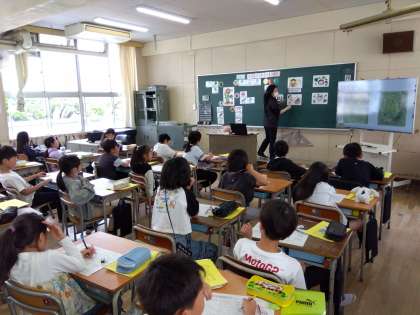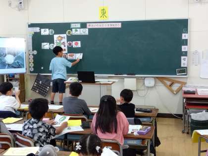 3年生の食育の授業です。栄養教諭の先生が全クラス順番に授業を行いました。今日はやさいのはたらきについて映像資料や黒板を使って学習しました。