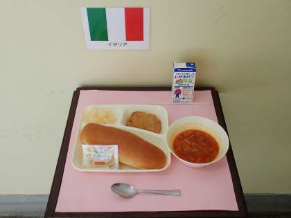 大阪市の給食では、イタリアのほかに、中国や韓国・朝鮮、インド、スペイン、ドイツ、フランスなどいろいろな国の料理が出ます。