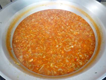 今日のミネストローネには、鶏肉とキャベツ、たまねぎ、にんじん、トマトなどの野菜を使っています。
