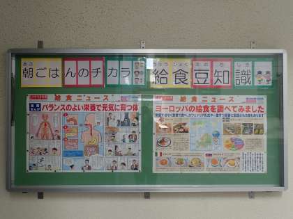 また給食掲示板にも、ヨーロッパの給食についてのポスターを貼っています。