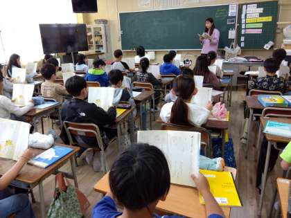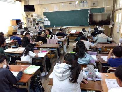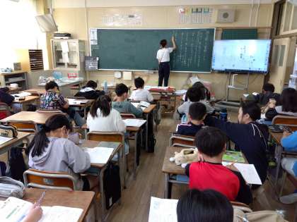 4年生の授業の様子です。理科の授業では観察の仕方について問題演習に取り組んでいました。国語の授業では、詩の音読や質問の仕方についての学習をしました。集中して取り組むことができていました。