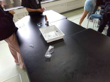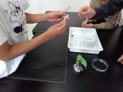 6年生の理科ではだ液のはたらきを学習しています。ヨウ素液を使って水とだ液の違いを確認しました。