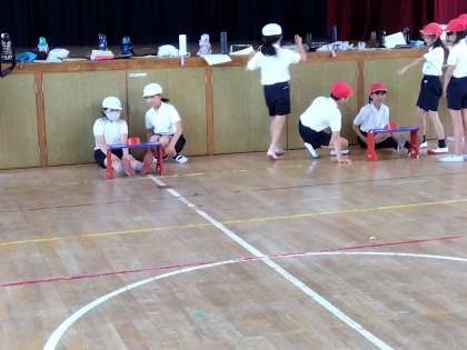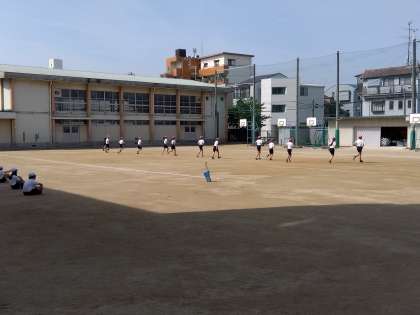 体育の授業の様子です。6年生は運動場でシャトルランをしました。3年生は運動場ではボール投げ、体育館では体前屈を計測しました。気温が急に高くなっているので、水分補給をしっかりとして熱中症対策をして活動しています。