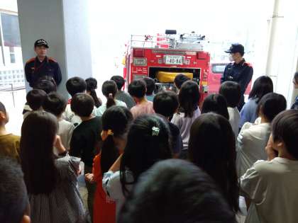 3年生は消防署のお仕事について教えてもらいました。また消防車を見学し消防車の設備について学びました。