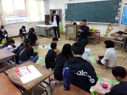 6年生は応急処置法について学習しました。動画の資料を見た後、実際に器具を使って体験しました。