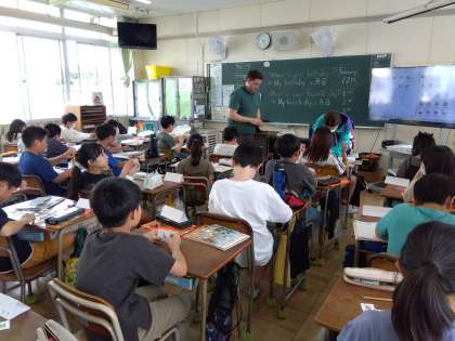5年の英語では"When is your birthday?"や"When is your favorite day?"などの質問に"My birthday is 〜"や"My favorite day is 〜"など日付で答える学習をしています。月の名前が書かれたカードを使って確認しながら練習しました。