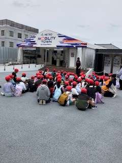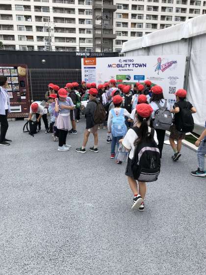 モビリティタウンに到着しました。場内マップを確認した後、それぞれが班で行動します。
