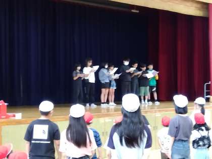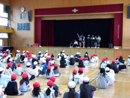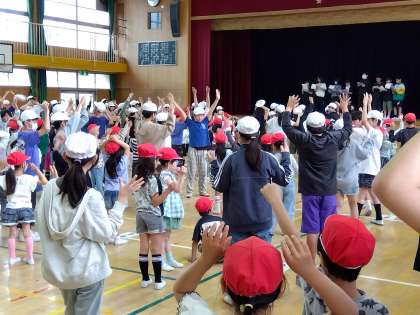 本日朝に体育館で1・6年生の学年集会を実施しました。船長さんの命令に従って行動しますが、たまに船長さんの命令じゃない命令が出されます。騙されて従った人は失格です。みんな楽しくゲームをすることができました。