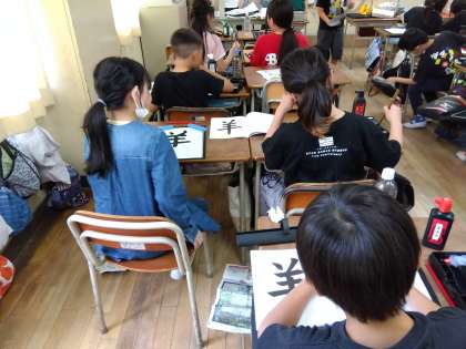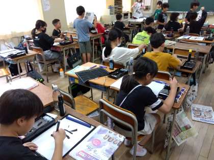 4年生の授業の様子です。書写では毛筆で「羊」の字に取り組みました。5時間目の前に学習者用端末で計算ドリルに取り組みました。