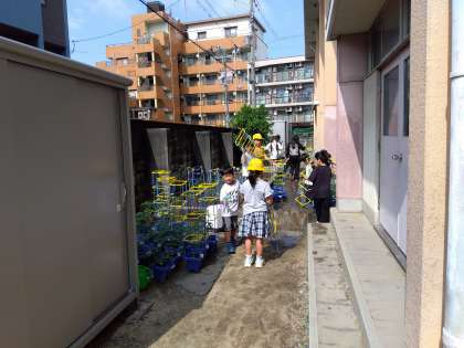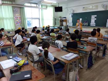 2年生の朝の様子です。今日は天気が良いのでミニトマトに水やりをしています。また、ボランティアの方が読み聞かせをしてくださいました。今日も元気に1日がスタートしています。