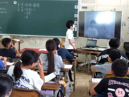 6年生の算数の授業では、分数の割り算を計算する方法について考えました。これまでに学習したことを使ってうまく計算することができました。また、いくつかの計算の方法を発表して、みんなで共有しました。