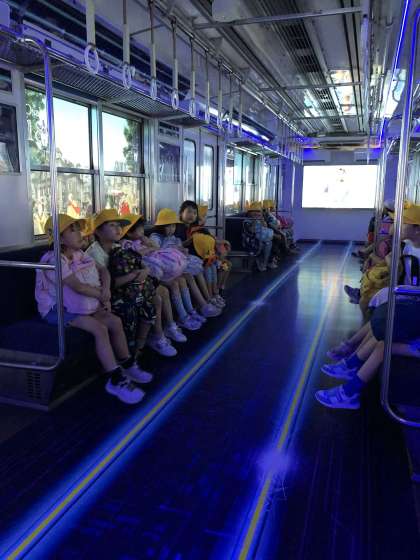 活動の様子です。車窓を通して、街並みをタイムスリップしています。