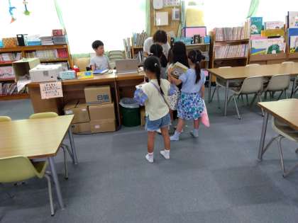 一昨日、昨日に続き、本日も暑さのため外遊びを中止にしました。教室でゆっくり過ごす児童や図書館を利用する児童もいます。雨ではありませんが、児童の皆さんはおすすめの雨の本を読んでみてはどうでしょうか。