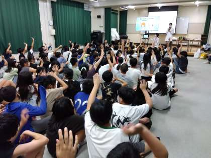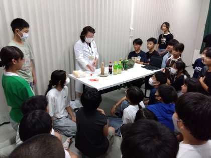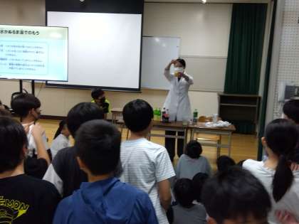 学校薬剤師の先生を講師にお迎えして、6年生でお薬教室を実施しました。薬の種類や飲み方などスライドや実験を通してわかりやすく説明してくださいました。