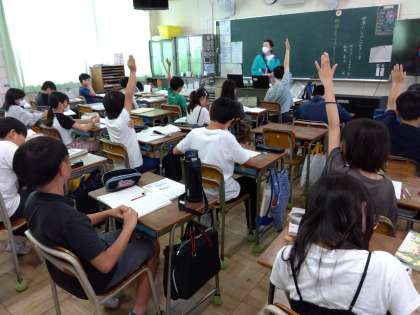 5年生の国語では「世界でいちばんやかましい音」の最初の授業で、全体を読んであらすじを確認しました。社会では農産物の産地について考えました。