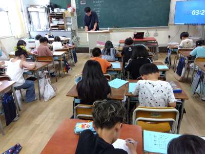 2年生の数学では大きい数の足し算、引き算のテストをしています。