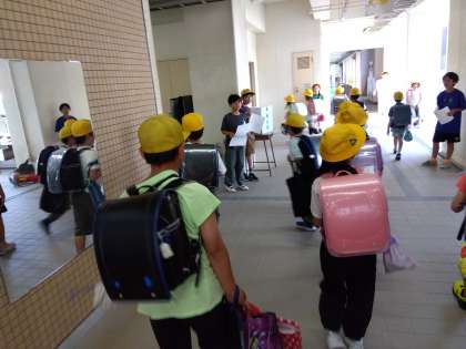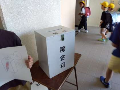写真は玄関での募金活動の様子です。今日も朝から暑くなっており、昨日は3時間からでしたが、今日は2時間目から水泳の授業を中止としています。水泳ができない日が続きますが、子どもたちは切り替えて学習に取り組んでいます。