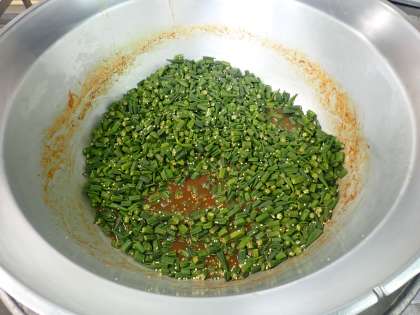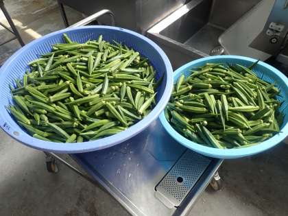 今月の給食では、オクラのおかかいためのほか、「オクラの梅風味」としてオクラが出ます。