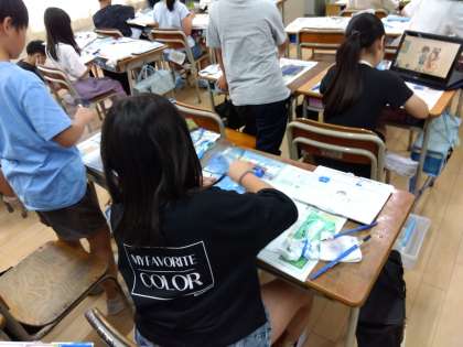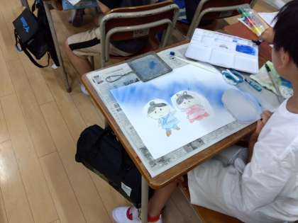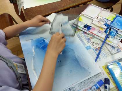 3年生の図工です。七夕の作品を作成しています。網と歯ブラシを使って天の川をきれいに表現しました。
