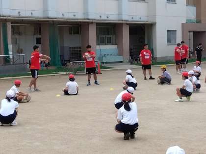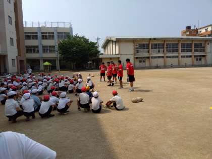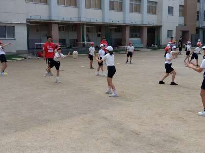 レッドハリケーンズの皆さんが5年生に体験授業をしてくださいました。ボールの扱いが難しいですが、選手のアドバイスを聞いて上手にパスをすることができていました。最後に質問コーナーがあり、選手の皆さんと子どもたちが交流することができました。