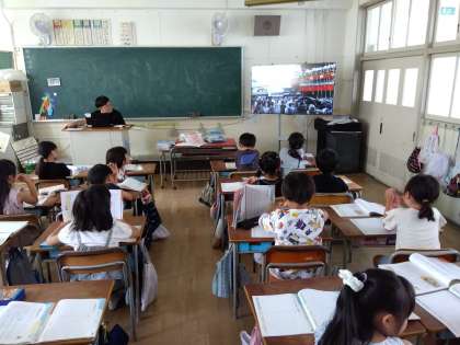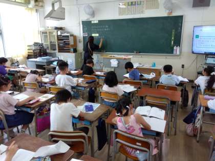 2年生の授業の様子です。道徳では「ぎおんまつり」を読んで、住んでいる地域の良さについて考えました。また、算数では体積について考えました。