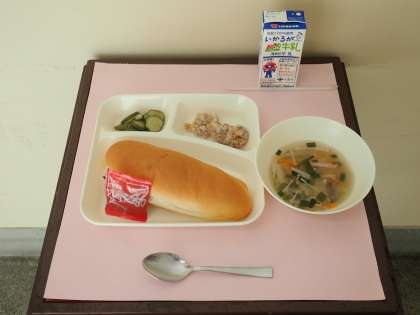 今日の給食には、ハムととうがんの中華スープが出ました。