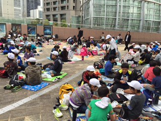 今日は5年生の遠足でした。大阪市立科学館と朝日新聞社に行きました。科学館では班行動でオリエンテーリングをしました。班のメンバーで協力して、科学に関するさまざまな展示物を楽しみながら、オリエンテーリングの問題にも取り組みました。どの班もしっかりとルールを守り、時間に遅れることもな楽しく活動することができました。科学館の前でお昼ご飯を食べた後は、朝日新聞社の見学です。新聞社の方がビルの前でお出迎えをしてくれ、社内を案内してくれ、朝日新聞の第一号からの歴史や新聞の作られ方など、たくさんのことを親切に教えてくださいました。とくに実際に社員の方がお仕事をされている場所を見せていただいたときは、独特の緊張感を感じました。帰りには自分たちの写真の掲載された号外の新聞など、たくさんのお土産をいただきました。心地よい秋晴れのもと、実りある一日となりました。