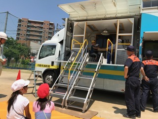 避難訓練の後は災害についての体験学習を行いました。1・2年生は○??クイズ、三年生は起震車体験を行いました。