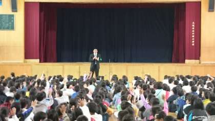 10月17日(火)講堂で児童朝会を行いました。児童朝会では、校長先生の話の後に後期児童会の運営委員の挨拶がありました。
