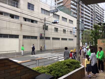 5月9日(水)は、「見守るデー」でした。下校時に黄緑のジャケットを着た「見守り隊」の方々、さらには東淀川警察の警官、また大阪成蹊大学のボランティアの学生さんなどに見守られながらの下校となりました。