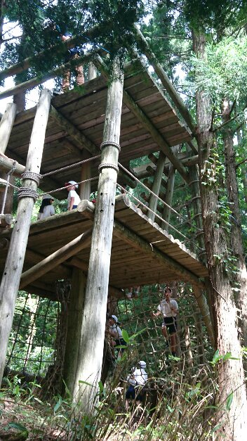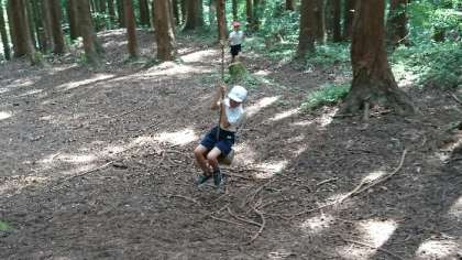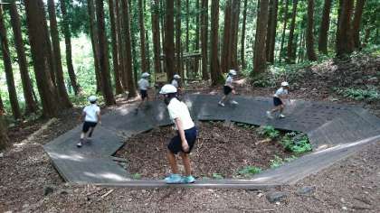 自然の中のアスレチックに