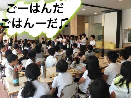 食事係の挨拶の後、ご飯の歌を歌い